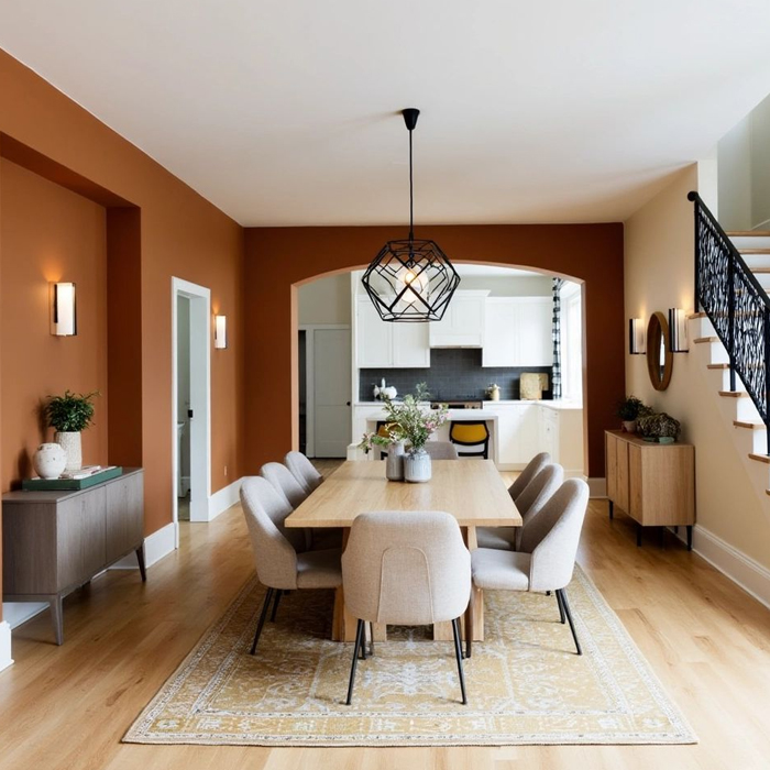 Comfortable and relaxed; designed for daily meals with family. Focuses on functional furniture, easy maintenance, and a cozy atmosphere.