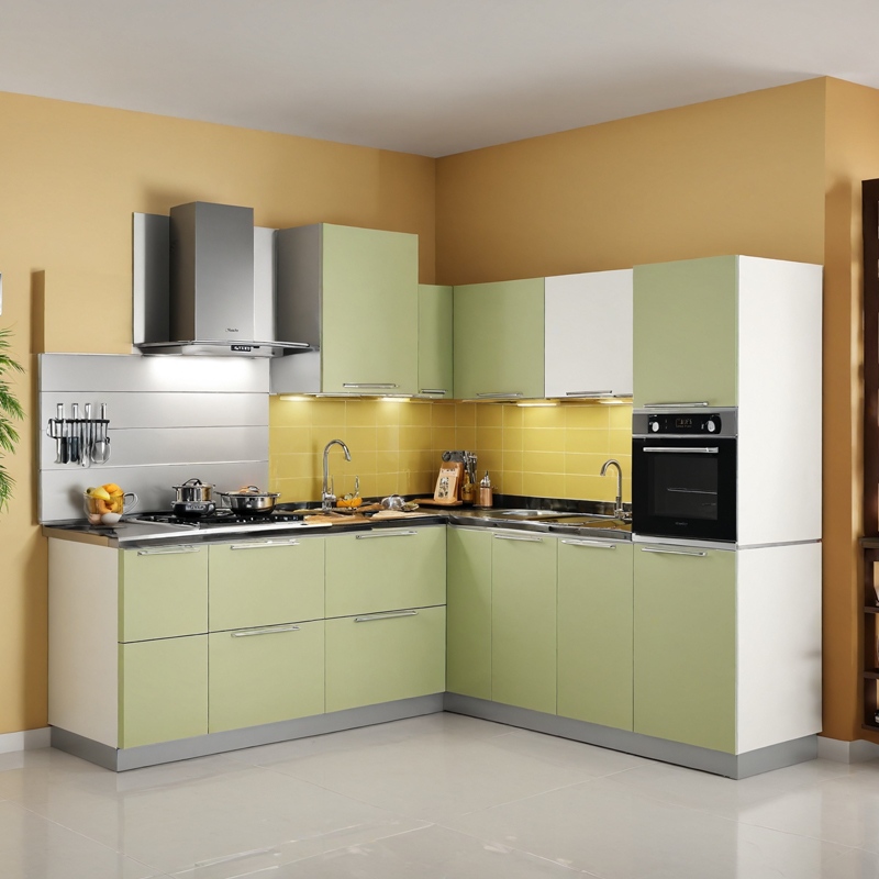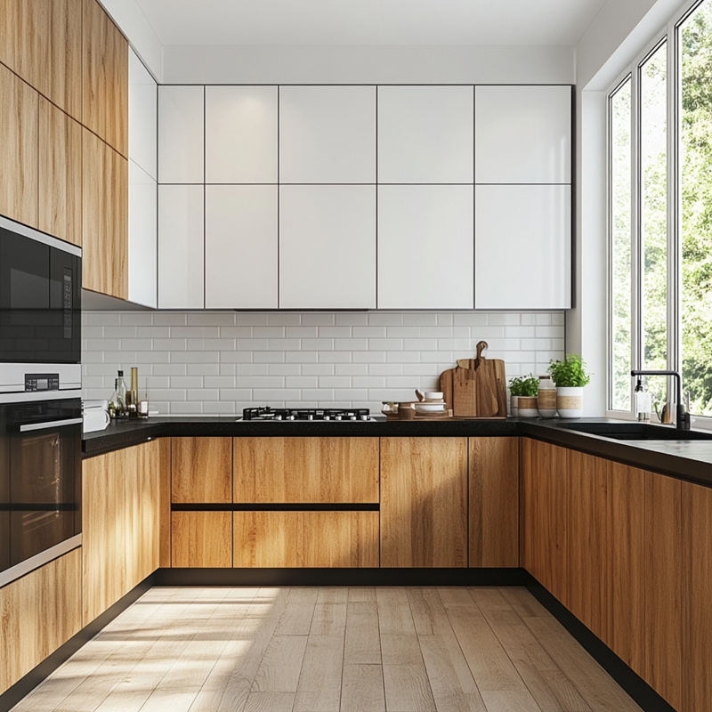 Modular kitchen cabinets are typically made from BWP plywood for superior moisture resistance and durability. HDF is popular for its smooth finish and affordability, while particle board offers a budget-friendly option suitable for low-moisture, light-use kitchens.